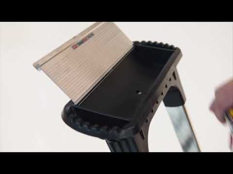 The aluminium platform features a red safety strip-indicator for maximum recommended step height and protective edge to prevent cuts and grazes.