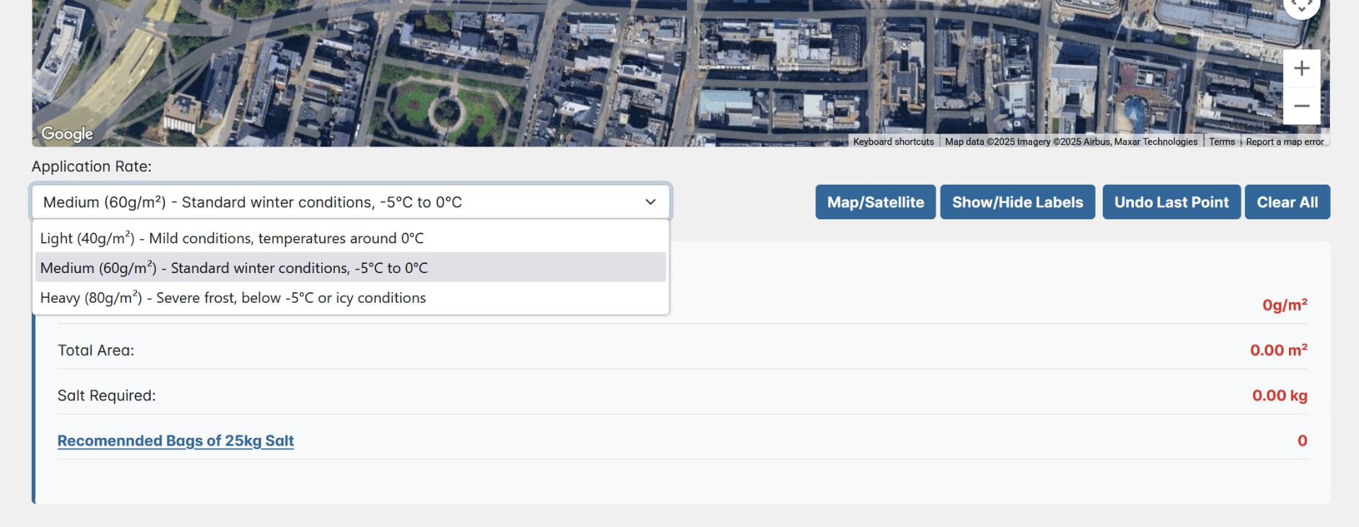 Click around the edges to create a shape of the area you need to salt – you can remove the last marked point or all points using the buttons below the map.